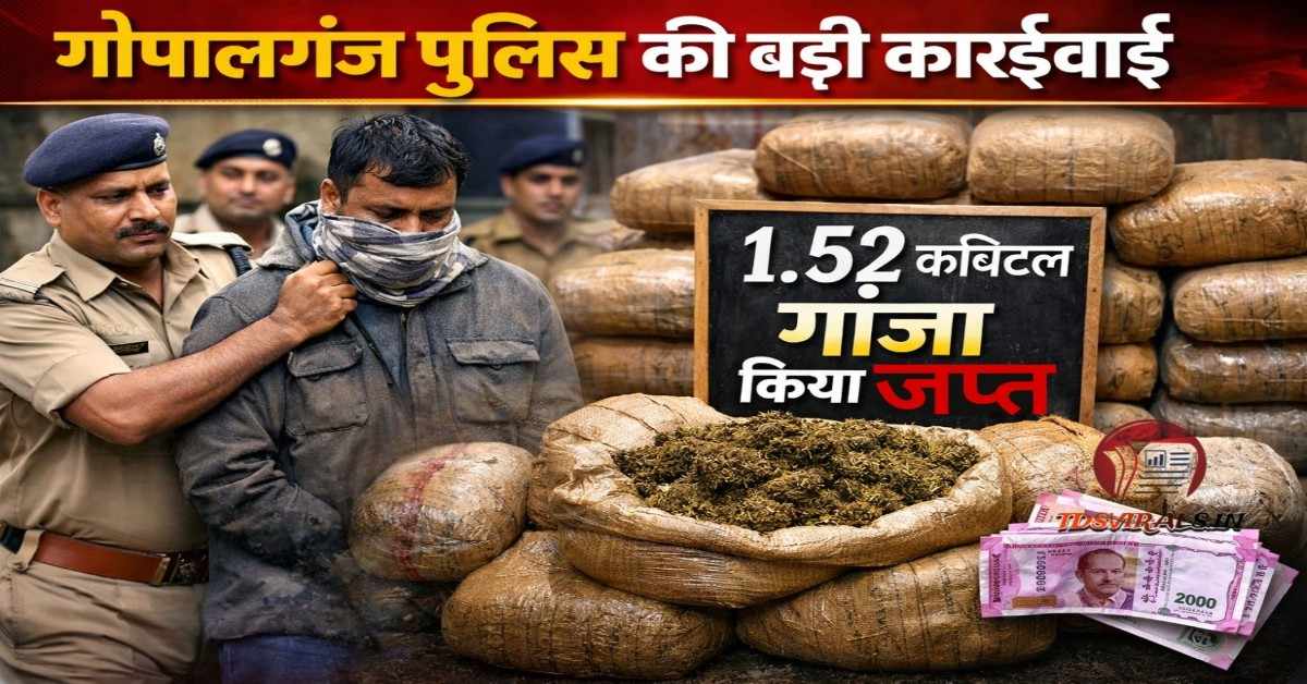 गोपालगंज पुलिस ने फेल किया गांजा तस्करों का मास्टर प्लान – 1.52 क्विंटल गांजा जब्त