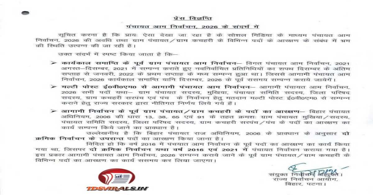 पंचायत चुनाव 2026: पंचायत चुनाव में आरक्षण प्रक्रिया समय पर होगी पूरी – राज्य निर्वाचन आयोग